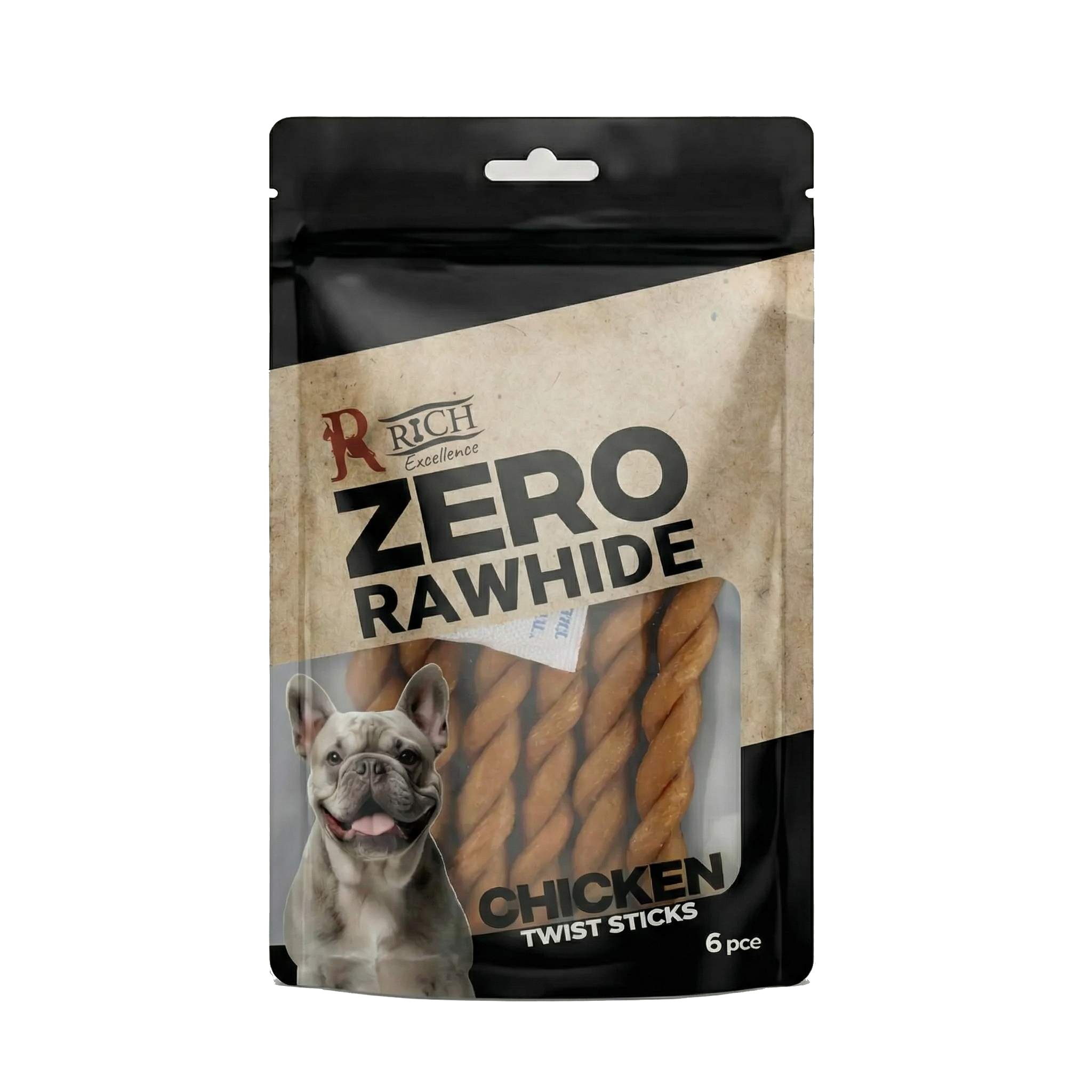 Traditional rawhide can be hard to digest. Rich Excellence Zero Rawhide treats are vegetable and chicken-based, making them fully digestible and safe for your dog’s stomach while still providing the chewing action they love.