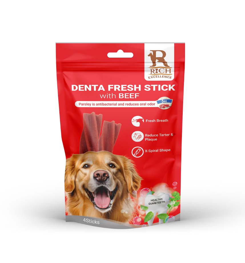 Denta Fresh Soft Treats are specifically designed in a star (X-spiral) shape to clean teeth during training. Rich in protein and calcium, these meat-flavored sticks make dental care delicious.