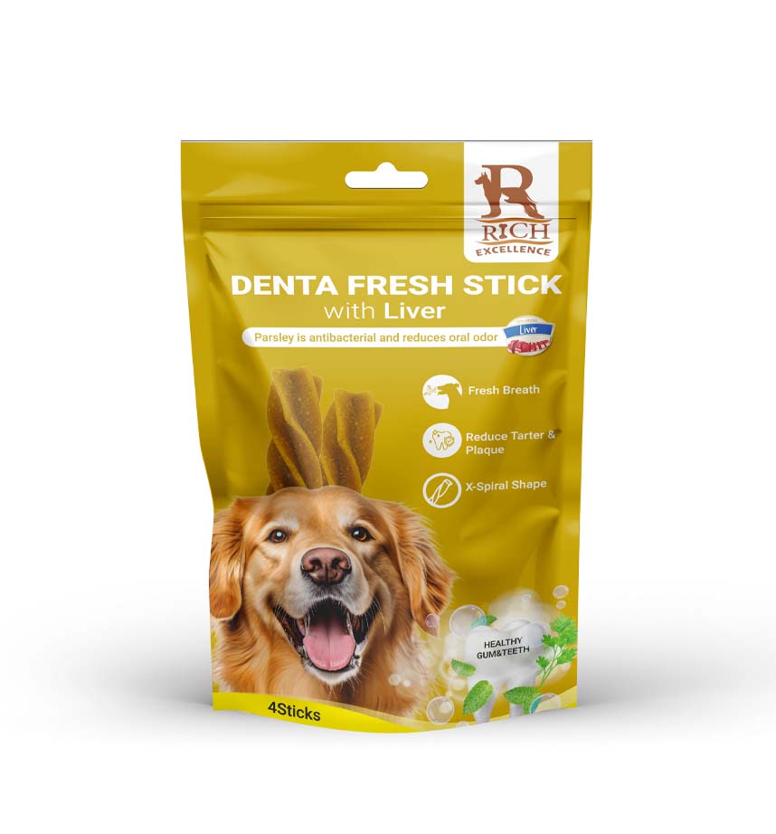 Denta Fresh Soft Treats are specifically designed in a star (X-spiral) shape to clean teeth during training. Rich in protein and calcium, these liver-flavored sticks make dental care delicious.