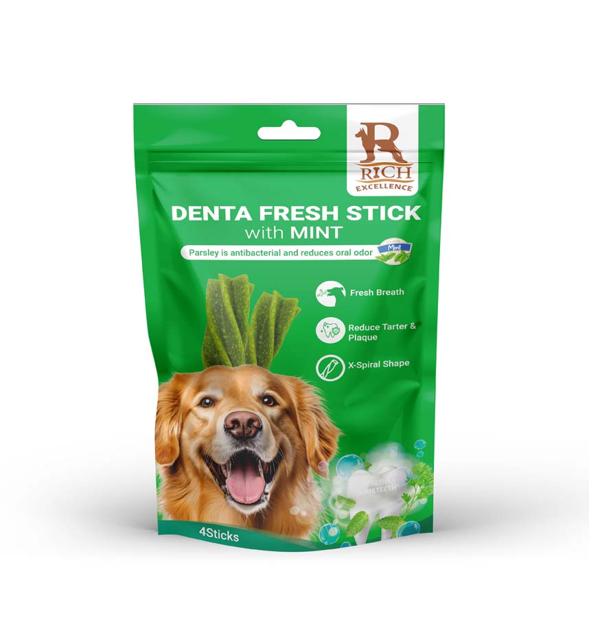 Denta Fresh Soft Treats are specifically designed in a star (X-spiral) shape to clean teeth during training. Rich in protein and calcium, these mint-flavored sticks provide the ultimate fresh breath experience.