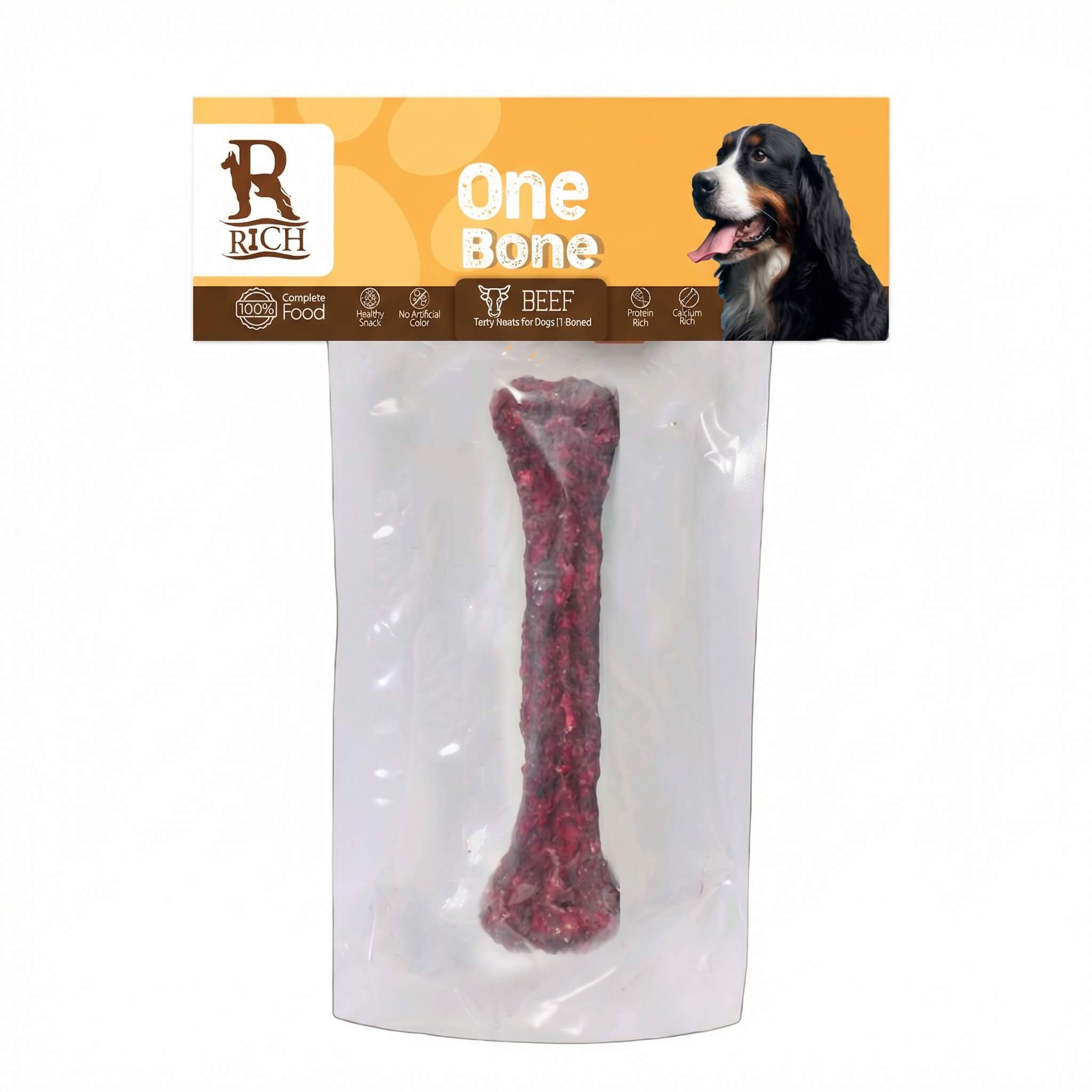 This large bone is generously coated with real beef, providing a dual-texture treat that keeps your dog occupied for hours. It helps clean teeth while satisfying their natural urge to chew.