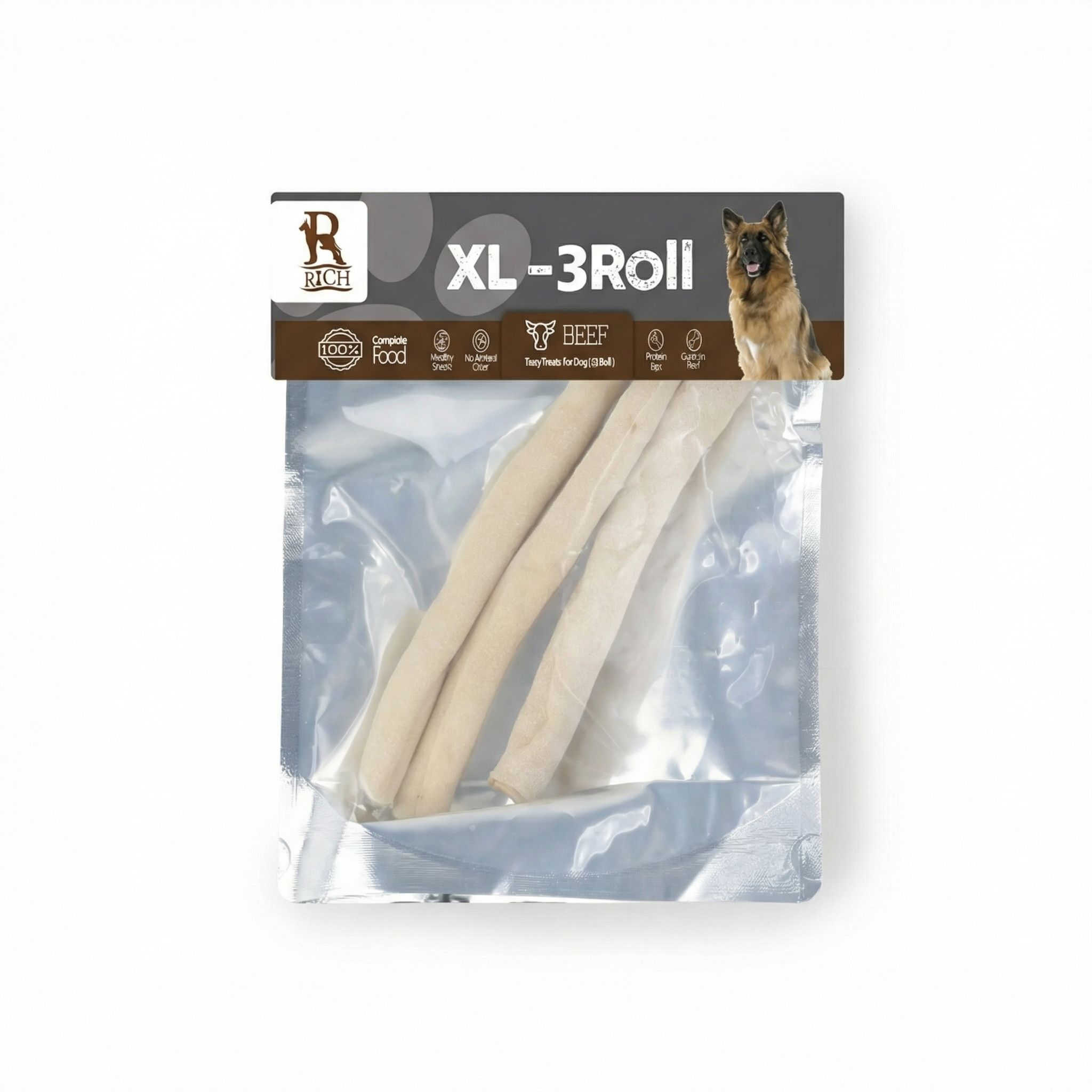 These XL rolls are designed for dogs that need a serious challenge. The dense calcium structure lasts longer than standard treats, providing extended entertainment and dental cleaning.